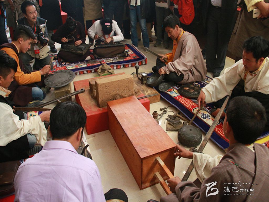 扎西是河坡藏傳手工技藝的代表性人物,7歲跟師學(xué)藝,13歲開始開辦手工作坊,從事這項手工工藝已經(jīng)20多年了。說話間,扎西自豪地向大家介紹,今天,在展廳展示手工技藝的人都是他的學(xué)生。在家鄉(xiāng)河坡鄉(xiāng)德來村幾乎家家戶戶都能打制藏刀和其他制作精美的佛具。