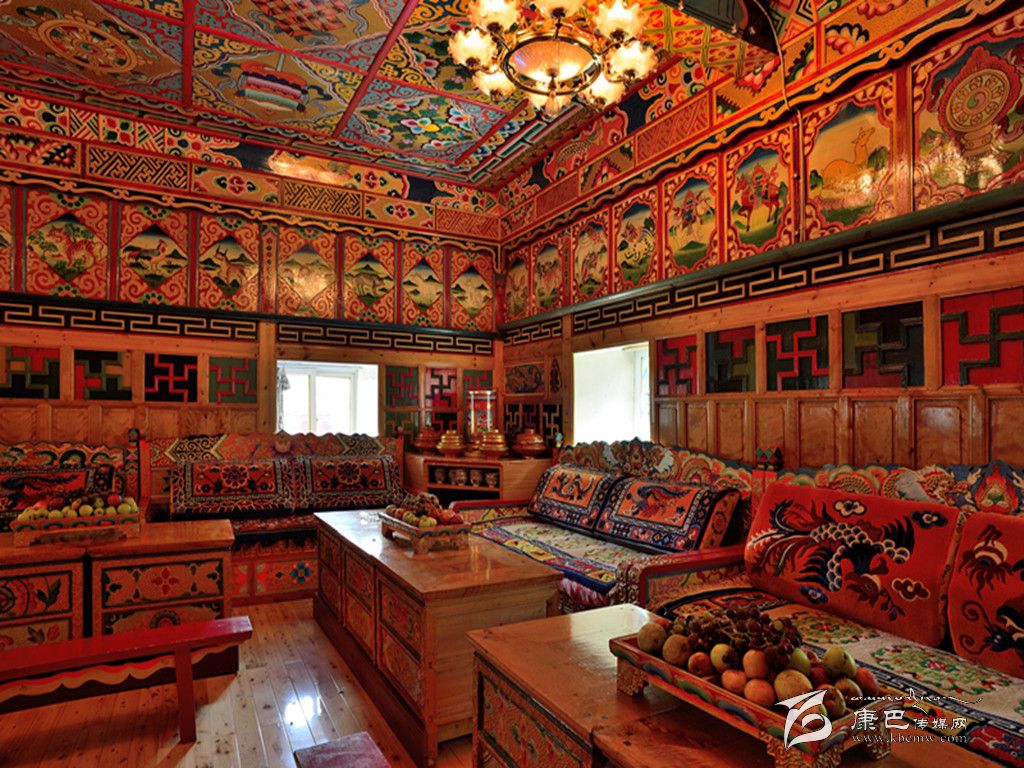 在功能布局上,打造別墅式風格,對公共區(qū)域和每個院落進行改造,擴大綠化面積,強化視覺效果;在外觀設(shè)計上,根據(jù)藏族傳統(tǒng)的建筑風格,提升風貌改造,從外觀上體現(xiàn)原滋原味的本土特色;在色調(diào)搭配上,采用藏族偏愛的暖色調(diào)和古典色加以渲染,融合現(xiàn)代與民族特色;在室內(nèi)裝修上,使用精美的藏式地毯、銅器、陶制品等傳統(tǒng)藏式器皿裝飾,采用唐卡、藏族題材油畫等元素點綴,并適當差異化裝修,以體現(xiàn)自然隨性舒適,讓游客透過每一個家庭感受到濃郁的藏寨風情。