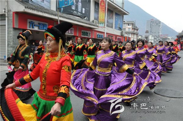 由瀘定縣弦子隊(duì)、金甘孜、色達(dá)協(xié)會(huì)、康定駐瀘協(xié)會(huì)組成的藏族方隊(duì);卡迪伲拉、北段社區(qū)、夕陽(yáng)紅、瀘橋鎮(zhèn)演出隊(duì)組成的彝族方隊(duì);企業(yè)協(xié)會(huì)和教師協(xié)會(huì)組成的扇子方隊(duì);巾幗腰鼓隊(duì)和南段社區(qū)瀘園快樂隊(duì)組成的鑼鼓方隊(duì)等演出人員穿上節(jié)日的盛裝,與全縣人民喜迎新春。
