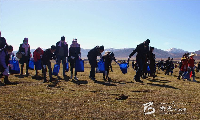 5月11日,距石渠縣城約5公里處的草原上人聲鼎沸,格外熱鬧。一大早,來(lái)自各單位的300余名黨員干部便聚集到了這里,身穿紅背心的青年志愿者們正忙著為大家分發(fā)口罩、手套等勞動(dòng)物品。而在人群最前端,一輛拖拉機(jī)滿載著一車類似飼料的東西,七八個(gè)人正有條不紊地將“飼料”卸車并分裝進(jìn)數(shù)百個(gè)藍(lán)色環(huán)保袋中。