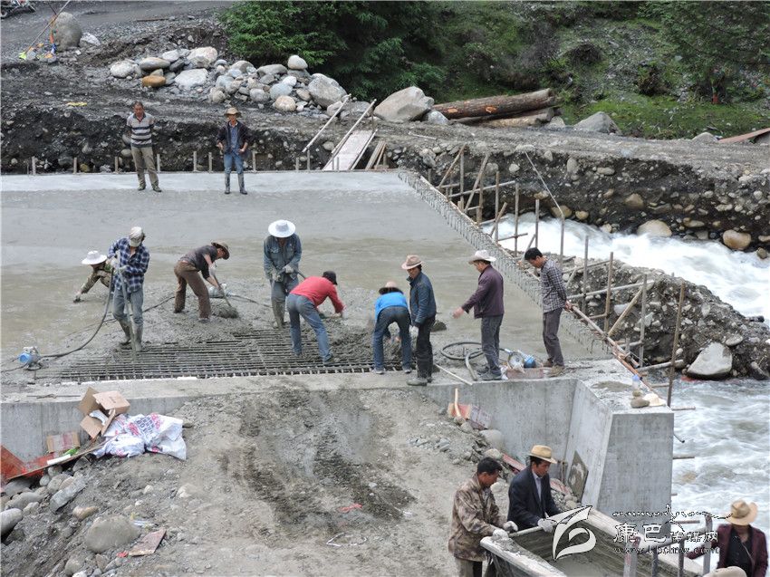 湯古鄉(xiāng)的農(nóng)牧民在修橋。