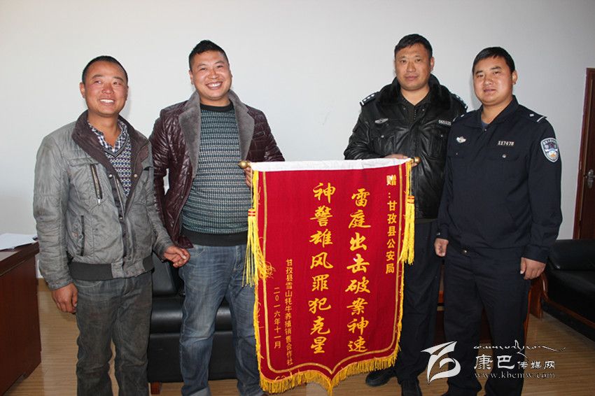 本網(wǎng)訊(余應(yīng)瓊 文/圖)11月11日,甘孜縣雪山牦牛養(yǎng)殖銷售合作社負責人鄭萬強將一面繡有“雷霆出擊破案神速 神警雄風罪犯克星”的錦旗送到縣公安局,表達對公安干警迅速破案,幫助貧困群眾挽回經(jīng)濟損失的感激之情。