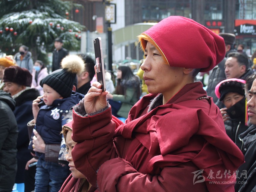 “節(jié)目太好看了,我最喜歡的就是弦子,每次一聽(tīng)到它的旋律,我就非常激動(dòng)。雖然天氣很冷,但看了這些精彩的表演,我很開(kāi)心,看到他們?cè)谂_(tái)上唱歌跳舞,感覺(jué)自己又回到了年輕的時(shí)候,在老家的草原上放聲歌唱。”觀看演出的巴登老人對(duì)記者說(shuō)。記者在現(xiàn)場(chǎng)看到,觀看演出的觀眾無(wú)論老少都看得十分入迷,有的觀眾還拿出手機(jī)照相、錄像,發(fā)在朋友圈,有的直接和不在現(xiàn)場(chǎng)的親人、朋友視頻,讓他們也感受康定的藏歷新年氛圍;有的小朋友由于個(gè)子不夠看不到舞臺(tái),在征得工作人員同意后,小心翼翼的站在了凳子上,看到表演后開(kāi)心地笑了。