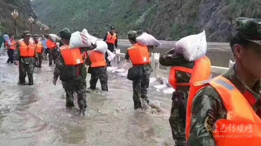 官兵奮戰(zhàn)抗洪一線。