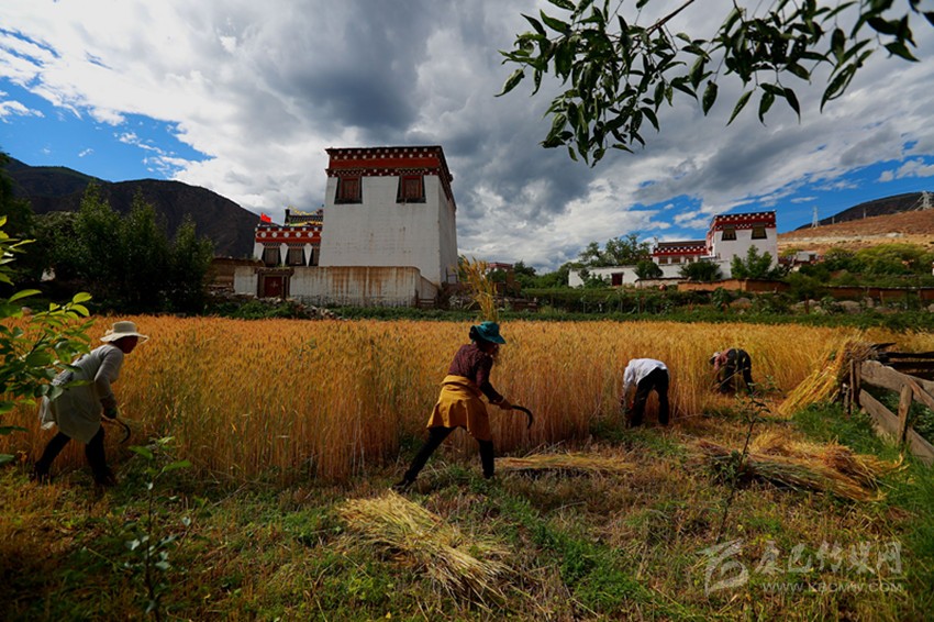 在青德鎮(zhèn)的田地里,隨處可見百姓忙碌收割的身影。熱龔村村民洛絨擁中雖然已忙得滿頭大汗,但是喜悅之情卻溢于言表,她說,由于今年風調(diào)雨順,家里種植的青稞和小麥收成比往年要好,趁這幾天天氣晴好抓緊搶收。筆者在地里看到,有不少收割完的農(nóng)戶正在幫助缺少勞動力的家庭,大家相互協(xié)作確保顆粒歸倉。據(jù)了解, 今年鄉(xiāng)城縣小麥和青稞種植面積達3萬余畝,長勢普遍較好。