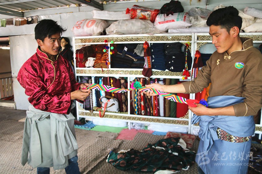 安孜鄉(xiāng)作為白玉縣海拔較高的鄉(xiāng)鎮(zhèn)之一,夏天是十分短暫的,連日來(lái)的晴好天氣,也透著絲絲寒氣。牧民阿剛想要量身定做一套過冬的藏裝,8月26日,他來(lái)到白玉縣阿察鎮(zhèn),一家民族服飾商貿(mào)公司吸引了他的目光?!拔覀冞@里的服裝面料是本地羊毛和從浙江進(jìn)的上等面料,做工考究,很多工序是純手工制作,服裝樣式你可以根據(jù)你的喜好指定,我們包你滿意?!钡陠T仁真熱情地介紹。聽了仁真的介紹,阿剛用手捻了一下服裝用料的質(zhì)地,看到印有“祥陽(yáng)措”商標(biāo)的精美包裝袋,商店里擺放的五彩斑斕、高端大氣的藏式男女服裝,他有些動(dòng)心了?!吧a(chǎn)這些服裝的都是我們納塔鄉(xiāng)的牧民,你可以考察我們的服裝用料、生產(chǎn)流程,再作打算?!比收鏌崆檠笠绲亟榻B說(shuō)。