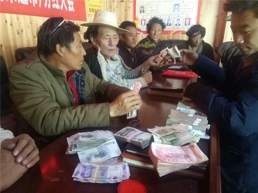 本網(wǎng)訊(縣委中心報道組 葉強平 文/圖)4月10日,領(lǐng)到1498元分紅的理塘縣曲登鄉(xiāng)渾查一村牧民扎西格勒把錢數(shù)了三遍,不是擔(dān)心錢沒給夠,而是沒想到自己以前不看好的超市真的分紅了。