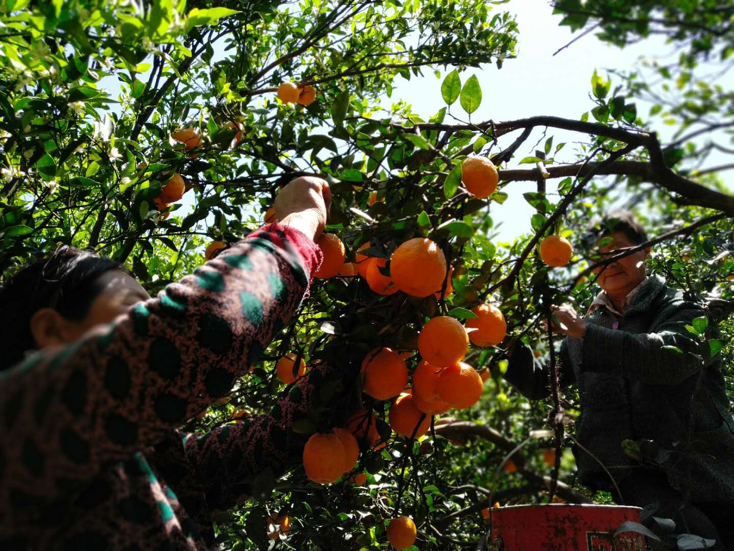 烈日下采摘的果農(nóng)。