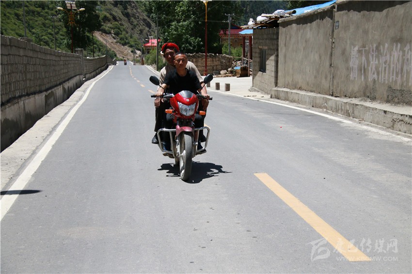 “以前村里沒公路,通鄉(xiāng)的也是一條‘土路’(機(jī)耕道),到縣城要兩個(gè)小時(shí)。因?yàn)槁窙r不好,騎摩托車稍不注意就滑到路邊溝里了。”哈米村村民呷絨澤仁回想交通不暢帶來的不便,仍是心有余悸。