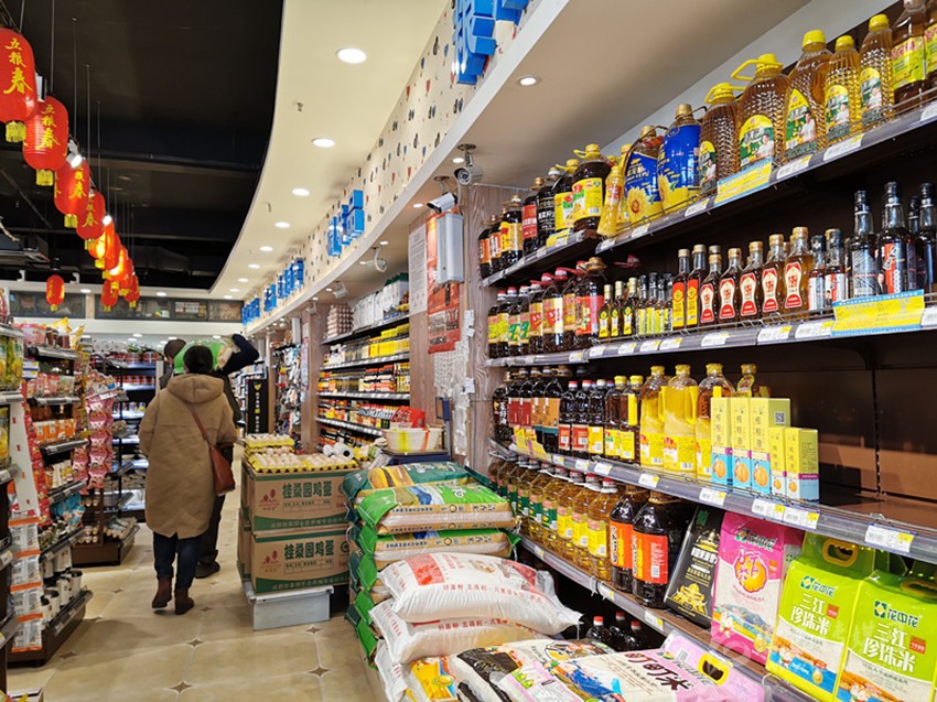 記者走訪多家民貿(mào)公司門(mén)店看到,糧油、調(diào)味品等擺滿了多個(gè)貨架,洗手液等也沒(méi)有出現(xiàn)斷貨現(xiàn)象,市場(chǎng)井然有序。