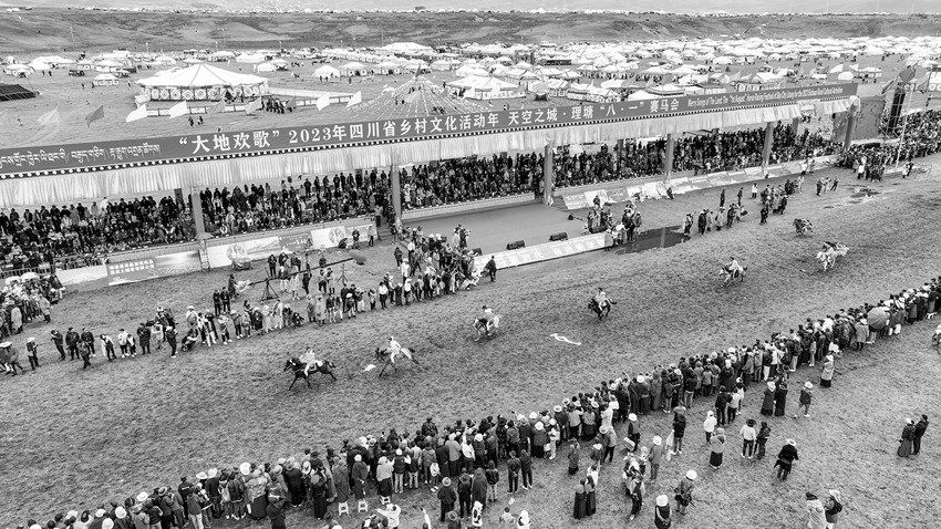 “中國(guó)藏族賽馬文化之鄉(xiāng)”“理塘八一傳統(tǒng)賽馬會(huì)”是四川涉藏州縣規(guī)模最大的賽馬會(huì),賽馬傳統(tǒng)延續(xù)長(zhǎng)達(dá)400余年。“早就聽(tīng)說(shuō)過(guò)馬背上的理塘,今天終于親眼所見(jiàn),實(shí)在不虛此行。草原追風(fēng),策馬飛奔,蹄聲如雷,震徹山野,這是多么壯美的理塘萬(wàn)馬奔騰圖?。《嘞脒h(yuǎn)離城市的喧囂,策馬揚(yáng)鞭,馳騁草原,豪邁瀟灑,勇往直前。以后每一年的理塘賽馬活動(dòng),我一定會(huì)帶上家人再來(lái)這里,因?yàn)槔硖?,可謂是心靈棲息的地方。”在“大地歡歌”2023年四川省鄉(xiāng)村文化活動(dòng)年——天空之城·理塘“八·一”賽馬會(huì)上,來(lái)自北京的游客石磊被當(dāng)?shù)刭愸R文化吸引,和朋友玩得不亦樂(lè)乎。