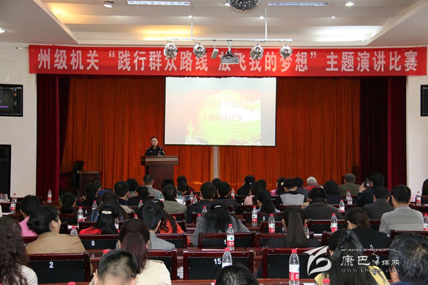 9月11日,州直屬機(jī)關(guān)工委主辦了“踐行群眾路線 ,放飛我的夢(mèng)想”主題演講比賽,18名來自州級(jí)機(jī)關(guān)的黨員干部展開了激烈角逐。選手們聲情并茂地講述了一個(gè)個(gè)感人至深的故事。民干校的選手用關(guān)愛學(xué)生的生動(dòng)事例,展現(xiàn)了共產(chǎn)黨員的宗旨和使命;州特警隊(duì)選手講述了自己和戰(zhàn)友立足崗位、踐行群眾路線的動(dòng)人故事;州人社局的選手講述了用真情為群眾奉獻(xiàn)自己一份微薄力量……一個(gè)個(gè)生動(dòng)的故事,感染了現(xiàn)場(chǎng)的每一位觀眾。圖為演講比賽現(xiàn)場(chǎng)。
