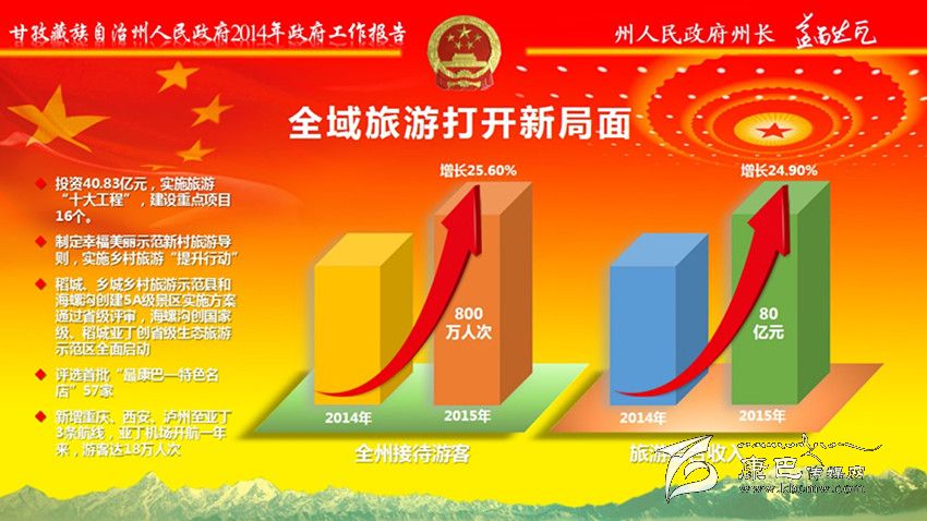 2015年是實施“十二五”規(guī)劃的收官之年,是承接“十三五”規(guī)劃的奠基之年,是全面深化改革的攻堅之年,是落實政府“1+8”文件的關(guān)鍵之年。政府工作的總體要求是:以黨的十八大和十八屆三中、四中全會精神為指引,貫徹落實州委十屆六次全委(擴大)會議精神,堅持“統(tǒng)籌聯(lián)動、穩(wěn)中求進、加快發(fā)展”工作基調(diào),以全域旅游統(tǒng)領(lǐng)經(jīng)濟社會發(fā)展,以民生改善凝聚民心民力,以災(zāi)后重建塑造美好家園,以依法治州促進穩(wěn)定和諧,推動經(jīng)濟社會持續(xù)健康發(fā)展。