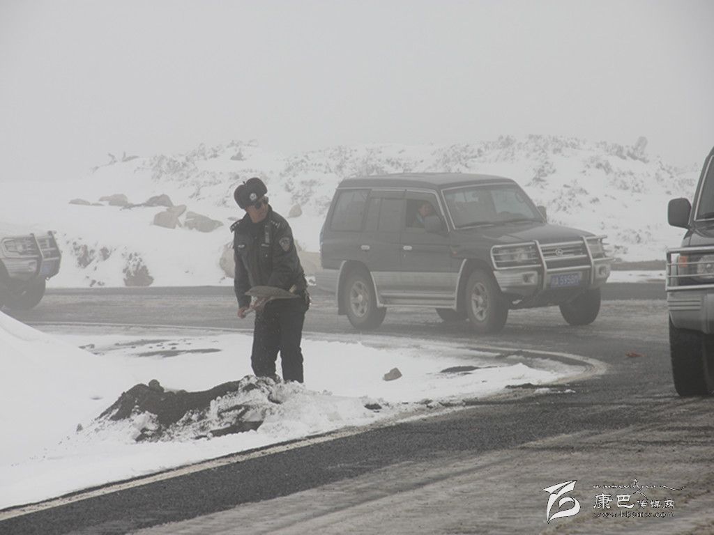 王洛讓在折多山頂除冰雪。