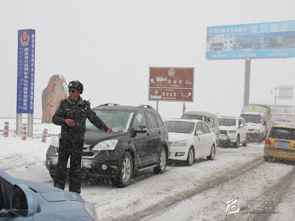 去年10月3日,華西都市報收到了讀者傳來的一張圖片,照片上的交警穿著厚厚的大衣,背景白雪皚皚。“這是我今天翻折多山的時候照的,當(dāng)時車子排隊翻山遇到堵車心里覺得毛焦火辣的,我當(dāng)時看到他站在暴雪中指揮交通,心里就像吃了定心丸,我要為這個交警點贊。”華西都市報記者尋著這條線索多方打探,終于聯(lián)系到了康定縣公安局交警大隊新都橋中隊長王洛讓。