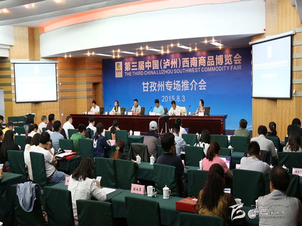 本網(wǎng)訊(記者 宋志勇文/圖)8月3日下午,由瀘州市人民政府舉辦的2015第三屆中國(瀘州)西南商品博覽會(huì)(以下簡稱“商博會(huì)”)專場推介會(huì)在我州康定市舉行。組委會(huì)期望通過商博會(huì)這一平臺(tái),進(jìn)一步加強(qiáng)和推動(dòng)瀘州、甘孜兩地商貿(mào)領(lǐng)域的合作交流,與甘孜州的企業(yè)、產(chǎn)品共同開拓西南區(qū)域市場,提高我州企業(yè)、產(chǎn)品的市場占有率。