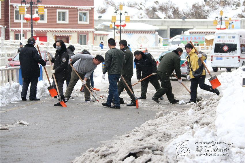 從22日上午起,記者在康定城區(qū)大街小巷看到,駐州部隊(duì)官兵以及部分單位職工緊急行動(dòng)起來(lái),清掃積雪。根據(jù)州委、州政府的安排,州直屬機(jī)關(guān)工委也于22日向州級(jí)部門、省屬單位各基層黨組織發(fā)出緊急通知,并逐一劃分責(zé)任片區(qū),組織干部職工集中清理辦公區(qū)、住宿區(qū)、街道積雪,確保道路安全暢通。 按照劃分的責(zé)任片區(qū),州級(jí)機(jī)關(guān)行動(dòng)迅速,到處可以看見(jiàn)干部職工揮動(dòng)鐵鏟除雪的忙碌身影。23日上午10點(diǎn)過(guò),記者看到從藏族小學(xué)到州委黨校的路段上,州委黨校和州檔案局的干部職工正在清除積雪。“大雪影響了這段路上居民的出行,積雪很深,給清掃帶來(lái)極大困難。州直機(jī)關(guān)工委號(hào)召機(jī)關(guān)單位干部職工積極行動(dòng)起來(lái)清理積雪,這是與人方便,也是與自己方便。積雪清掃干凈后,走在路上不需要擔(dān)心被滑倒。”州委黨校教師扎西說(shuō)。
