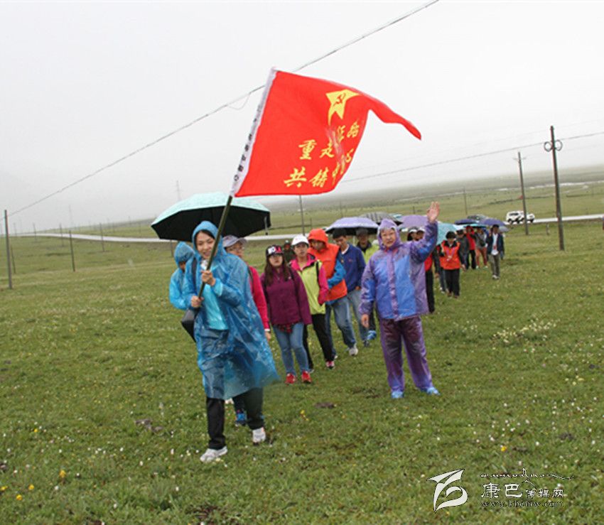 7月13日,“同心·共鑄中國心”大型醫(yī)療公益活動醫(yī)療專家志愿者在結(jié)束4天的義診活動后,來到海拔4200米的理塘縣禾尼鄉(xiāng)毛埡大草原,冒雨體驗紅軍過草地、品味紅軍“行軍餐”。(葉強(qiáng)平 攝影報道)