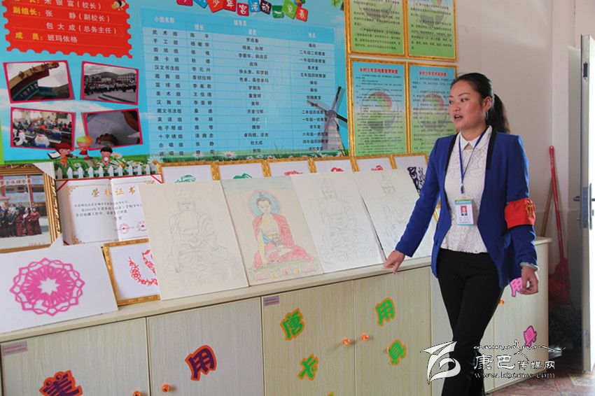 在少年宮孩子們參加格薩爾說唱表演的照片和一件件作品前,負責(zé)少年宮教學(xué)的張靜老師告訴記者,本著弘揚傳承傳統(tǒng)文化的宗旨,少年宮目前設(shè)有14個興趣小組,包括唐卡、說唱、舞蹈、剪紙、藏文書法、手工、電子琴等,有30多名輔導(dǎo)老師利用業(yè)余時間和自己的特長從事教學(xué)工作,另外,在色達縣委宣傳部的支持下,縣文化館還專門選派了兩名輔導(dǎo)員擔(dān)任說唱組的教學(xué)工作。