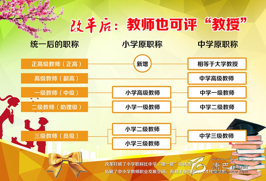 一是中小學(xué)教師職稱“天花板”被拆除,可參與全省統(tǒng)一組織的“正高級(jí)”職務(wù)評(píng)定;評(píng)定后,工資、福利待遇與大學(xué)正教授等同。此項(xiàng)在此次改革中最受關(guān)注。