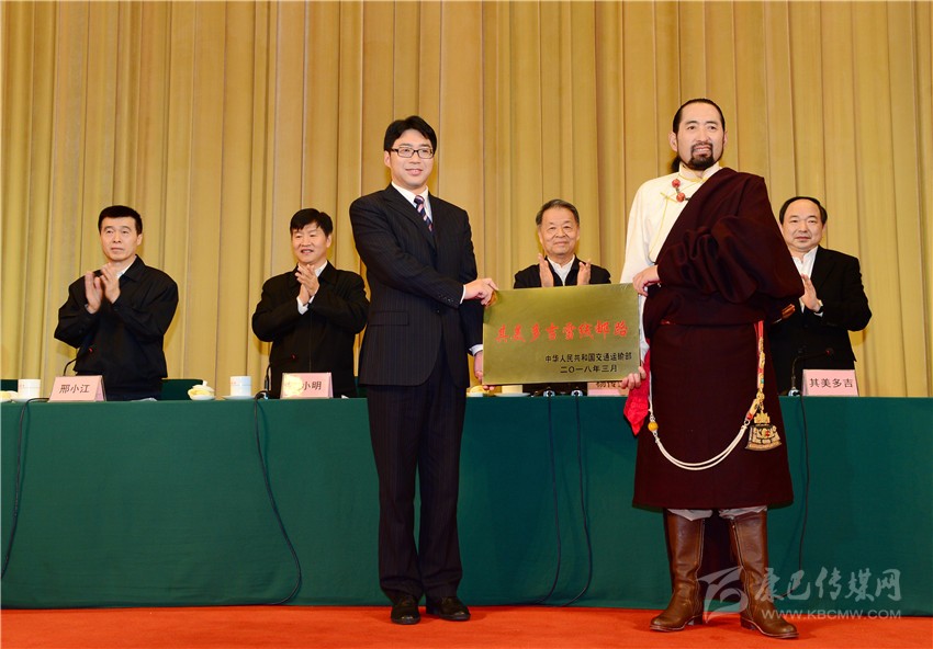 交通運(yùn)輸部黨組書記楊傳堂為“其美多吉雪線郵路”授牌。 朱正義 攝