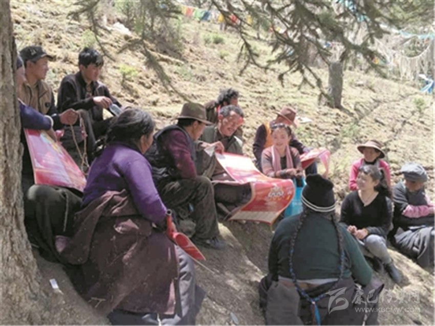 法治宣講員在蟲草山跟進開展面對面宣講。