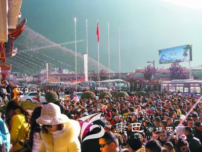 海螺溝景區(qū)管理局工作人員告訴記者,與很多著名旅游景點相比,從各項數(shù)據(jù)來看,海螺溝景區(qū)正躋身為廣大游客春節(jié)旅游的首選地。在張燈結彩的磨西鎮(zhèn)上,記者看到各大商鋪、餐館均在營業(yè),大批游客在街道上來往穿梭,景區(qū)觀光車正搭載著一批批游客前往景區(qū),而各種自駕游的車輛則滿滿停放在專門的停車場內(nèi)。