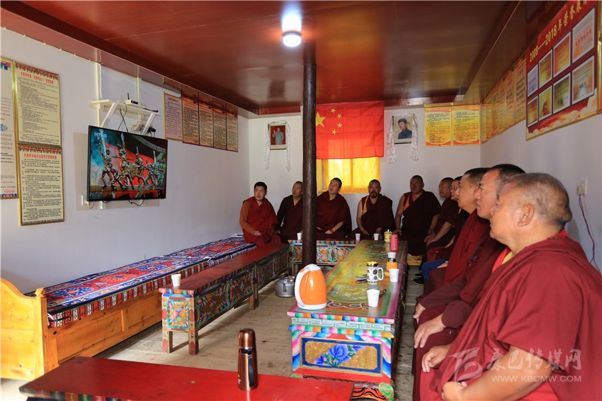 還不到10點(diǎn),桑批嶺寺僧侶50多歲的洛絨益西和70多名僧侶就圍坐在電視機(jī)前等候,觀看慶祝大會上盛大的閱兵式直播。當(dāng)看完習(xí)近平主席的講話和氣勢恢宏的閱兵式后,洛絨益西滿是激動和自豪,表示將加強(qiáng)佛學(xué)修為,為寺廟發(fā)展和社會和諧多做貢獻(xiàn)。