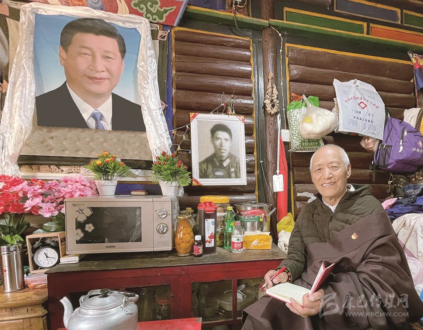 “這本上世紀(jì)60年代印的藏文版毛主席語錄,我不知道翻了多少遍,都快要翻爛了?!比A發(fā)蒼顏,中氣十足的多加對記者笑言:“我從小是‘娃子’,根本認不到字,不管是藏漢文;但我現(xiàn)在能流利地讀寫藏文,全是藏民團里會藏文的漢族戰(zhàn)友教的;更有意思的是,我的漢話是藏民團里會說四川話的藏族戰(zhàn)友教的!”