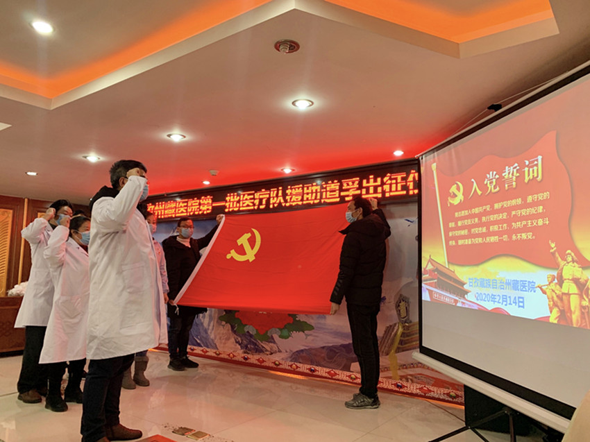 事實證明,州藏醫(yī)院的擔(dān)心和提前準(zhǔn)備完全是必要的。2020年2月,道孚縣爆發(fā)疫情,全縣進(jìn)入管控狀態(tài)??粗约旱募亦l(xiāng)發(fā)生疫情,州藏醫(yī)院的醫(yī)護人員心急如焚。盡管對這未知的病毒心中沒底,但沒人退縮,全院上下皆積極請戰(zhàn)。在醫(yī)院黨委再次申請下,州抗疫指揮部研究同意了藏醫(yī)院參與抗疫工作,2月14日,在時任副院長、主任藏醫(yī)師江吉村的帶領(lǐng)下,藏醫(yī)診療隊奔赴道孚。這是新中國成立以來,藏醫(yī)首次參加的大型抗疫阻擊戰(zhàn)。