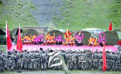 本網(wǎng)訊 (記者 秦松 文/圖)為鼓舞駐訓(xùn)部隊官兵、民兵預(yù)備役人員士氣,激勵戰(zhàn)斗精神,激發(fā)訓(xùn)練熱情,7月12日,我州國防文工團赴塔公地區(qū)為駐訓(xùn)部隊官兵送上了一頓豐盛的“文化大餐”。