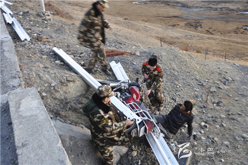 11月29日,甘孜州消防官兵在抗震救災(zāi)途中,發(fā)現(xiàn)一名騎摩托車(chē)的青年摔倒在5米高的路基下,右腿被死死被壓住不能動(dòng)彈。據(jù)了解,消防官兵結(jié)束道孚縣中古村安置點(diǎn)消防安全檢查,準(zhǔn)備返回祖慶學(xué)校安置點(diǎn),行駛至塔公鄉(xiāng)海拔4000米左右處,發(fā)現(xiàn)事發(fā)摩托車(chē)就在消防官兵所乘車(chē)輛前10米處。駕駛?cè)藛T是一名藏族青年,在他發(fā)動(dòng)摩托車(chē)時(shí),轉(zhuǎn)眼就摔倒掉下公路路基。