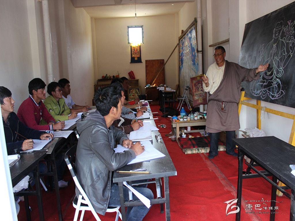 呷絨多吉告訴筆者:“這個培訓(xùn)班的學(xué)生有兩種,一種是本身熱愛畫畫的,還有一種是不好好上學(xué),不聽家長話,又不愿意打工掙錢的。學(xué)畫畫,能讓這些孩子靜下心來,因為畫畫是需要靜下心來才能做好的一件事。孩子們學(xué)到一技之長后,面對未來他們會更有自信。”