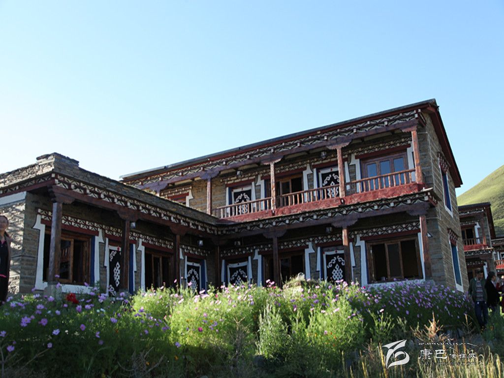 貢嘎宗·莊園坐落于新都橋鎮(zhèn),距318國道600米的半山腰處,從酒店客房遠可眺望貢嘎雪山,近可欣賞美麗的田園風光。貢嘎宗·莊園的標志性建筑是一座五層高的碉樓,碉樓是藏區(qū)很有歷史代表性的建筑,在古代主要是起到防御的作用,這里的碉樓和住宅緊靠在一起,每一間房屋都是朝陽而居,采光極好,每座樓房的每面墻上開著三四扇窗戶,窗檐上用紅、黑、白、藍等色彩描繪著,偶爾可見喜鵲在房前、溪邊、草地上飛翔、跳躍。所以主人將其取名為“貢嘎宗,”意為“貢嘎雪山映照下的城堡。”