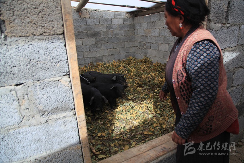 “文化嘛,我不高,啥子說不來?!便y鳳用手指了指紅本本。蒲江濤解釋到,按了手印,就表明這些扶貧項目已經(jīng)落實了。在銀鳳家房背后,紅本本上寫的扶貧項目一一變成了現(xiàn)實。去年修的豬圈、雞圈、蔬菜大棚緊緊挨在一起?,F(xiàn)在,銀鳳家里有豬16頭,雞40多只。