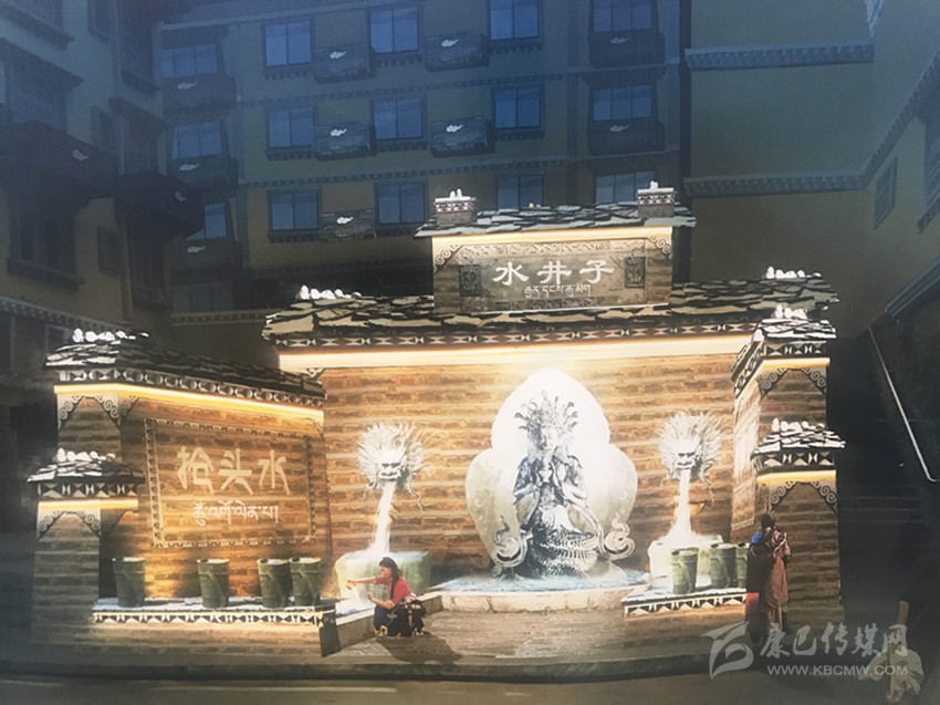 在現(xiàn)場(chǎng),“水井子”原址已被圍擋封閉施工。根據(jù)設(shè)計(jì),此次提升將融入“搶頭水”民族習(xí)俗,并結(jié)合互動(dòng)性祈福、見證愛情的表現(xiàn)手法旨在將水井子打造成為康定城中的體驗(yàn)式民俗景點(diǎn)。從外觀上看,內(nèi)街水井依然采用開放式外墻,正中神龕放置藏族水龍王塑像,兩邊塑造龍頭,以“二龍噴水”景觀作為新的出水方式,下方池邊則安放傳統(tǒng)背水姑娘雕塑。