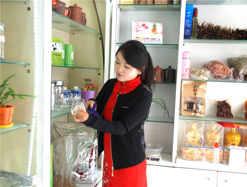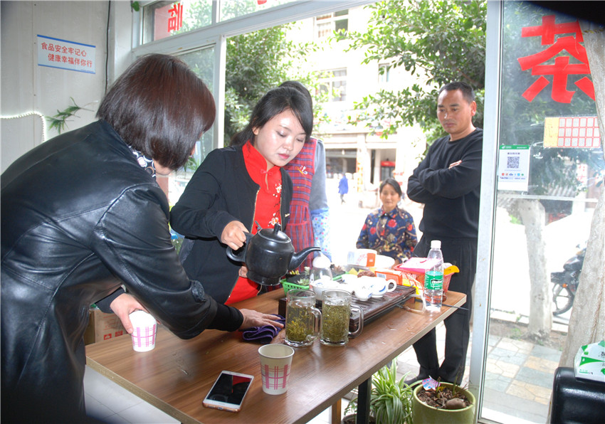 康復(fù)后的朱靈自主創(chuàng)業(yè)開(kāi)辦茶行。