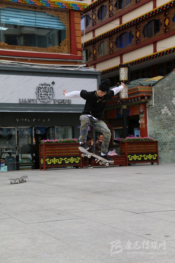 6月22日,世界滑板日,康定市情歌廣場,一群滑板少年舉著“GOTTA’318”大旗,正在演繹精彩。他們時(shí)而團(tuán)隊(duì)作業(yè),時(shí)而單兵作戰(zhàn),時(shí)而爭相競技,時(shí)而相互逗樂。當(dāng)他們舞動(dòng)旗幟,蛇形而行,呼嘯而來,你會(huì)感受到蓬勃的青春氣息撲面而來;當(dāng)他們帶板直上滑桿,倏忽而過時(shí),你會(huì)在那一剎那感到記憶一陣空白,然后發(fā)出一聲驚嘆;當(dāng)他們瞬間起跳,在空中360度轉(zhuǎn)體,然后像雄鷹一樣翱翔時(shí),你會(huì)感覺歲月易老,對(duì)青春只有追憶;而當(dāng)他們競技“爭高”“望遠(yuǎn)”時(shí),你會(huì)感受到那鍥而不舍的奮斗精神充盈你的脈管……