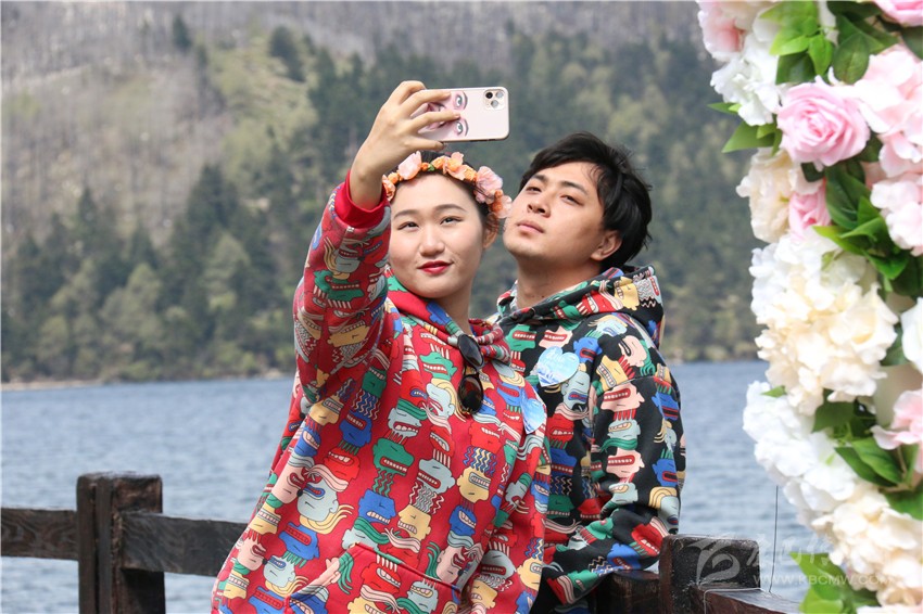 “今年已走過20年婚姻歲月?!眮碜猿啥嫉母姘渍哐詵|和王艷是通過網(wǎng)絡(luò)招募的情侶。他們說:“今天很榮幸來參加這個(gè)活動(dòng),木格措很美,在今天這個(gè)特殊時(shí)刻,來到這里打卡,將成為我們婚姻生活里美好的回憶?!?/p>