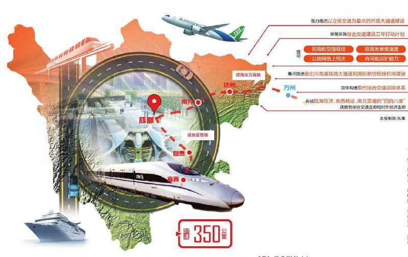 對(duì)內(nèi),有助于支撐我省“一干多支”“五區(qū)協(xié)同”發(fā)展戰(zhàn)略。西南交大黨委副書記晏啟鵬認(rèn)為,四川空、公、水運(yùn)已有一定基礎(chǔ),發(fā)展態(tài)勢(shì)清晰,再新增受惠面大、參與度廣的兩條高速鐵路建設(shè),能使成都和川南經(jīng)濟(jì)區(qū)、川東北經(jīng)濟(jì)區(qū)實(shí)現(xiàn)1小時(shí)左右交通互聯(lián),不同城市將連點(diǎn)成面。
