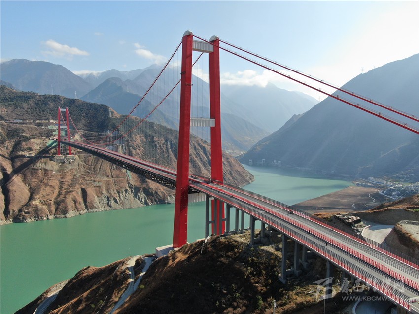 而瀘定大渡河大橋作為雅康高速全線“一橋一隧”重點控制性工程之一,是一座建設(shè)在高海拔、高地震烈度帶、復(fù)雜風(fēng)場及溫度場環(huán)境下的超大跨徑鋼桁梁懸索橋,全橋長1411米,主跨1100米,橋面至大渡河水面239米,被譽為“川藏第一橋”。