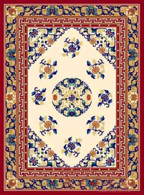 藏毯是植物染色,手工捻線,經(jīng)藝人的精心編織而成。它柔軟、耐用、美觀、大方,又有濃厚的民族特色,對生活在高寒地區(qū)的人們隔潮御寒、保溫取暖有重要作用。因些是長期在牧區(qū)生活所不可缺少的用品。它的品種,有地毯、炕毯、坐毯等。它是在藏族傳統(tǒng)藝術(shù)的基礎(chǔ)上,吸收、融合了漢族、印度和尼泊爾宗教藝人精華,形成具有自己獨特的藏族藝術(shù)風(fēng)格的工藝美術(shù)品。 傳統(tǒng)藏毯的藝術(shù)風(fēng)格,帶有濃厚的宗教色彩,如佛八寶、暗八仙、國王七寶等。佛八寶即法輪、法螺、寶傘、寶蓋、荷花、寶罐、雙魚、盤花;暗八仙屬漢道教文化即寶劍、寶葫蘆、漁鼓、陰陽板、仙笛、寶扇、花籃、荷花;國 王七寶也稱怵寶,屬印度佛教文化,即方勝、連環(huán)錢、犀角、令牌、象牙、珊瑚、珠寶。還有漢文化的琴棋書畫和梅蘭竹菊等。這些內(nèi)容既展示了人們的勤勞智慧和精神力量,也體現(xiàn)出人們對美好未來的期待、愿望和幻想。藏毯的表現(xiàn)形式以傳統(tǒng)式為主,還有自由式、龍鳳式及隨品種形式不同的構(gòu)圖形式。色彩表現(xiàn)方面尤為豐富,顏色艷麗、純度高、對比強,色彩構(gòu)圖穿插靈活,與藏族建筑彩畫的裝飾風(fēng)格一脈相承。